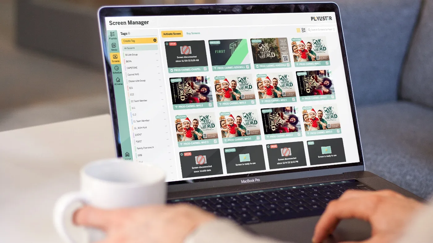 Efficient content delivery. Churches can drag and drop media into playlists, schedule when they appear on TVs, and ensure that all content is ready for sermons without the need for manual setup each week.