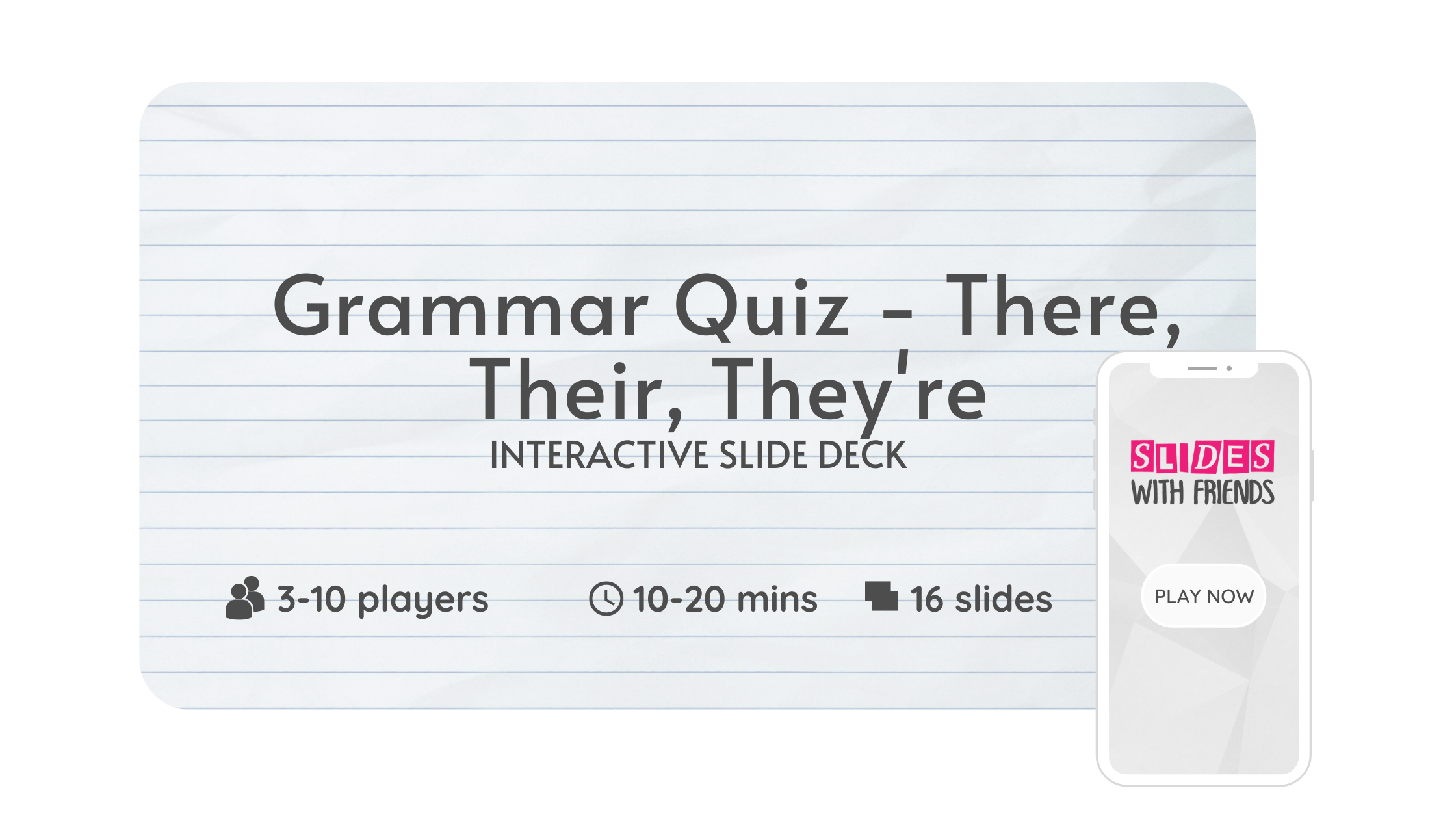 With Slides with Friends, you can create online quizzes that give real-time feedback to ensure everyone is understanding the content to the best of their abilities. We even have several pre-made decks you can use for basic quizzes, like our Grammar Quiz or Reading Comprehension Quiz.