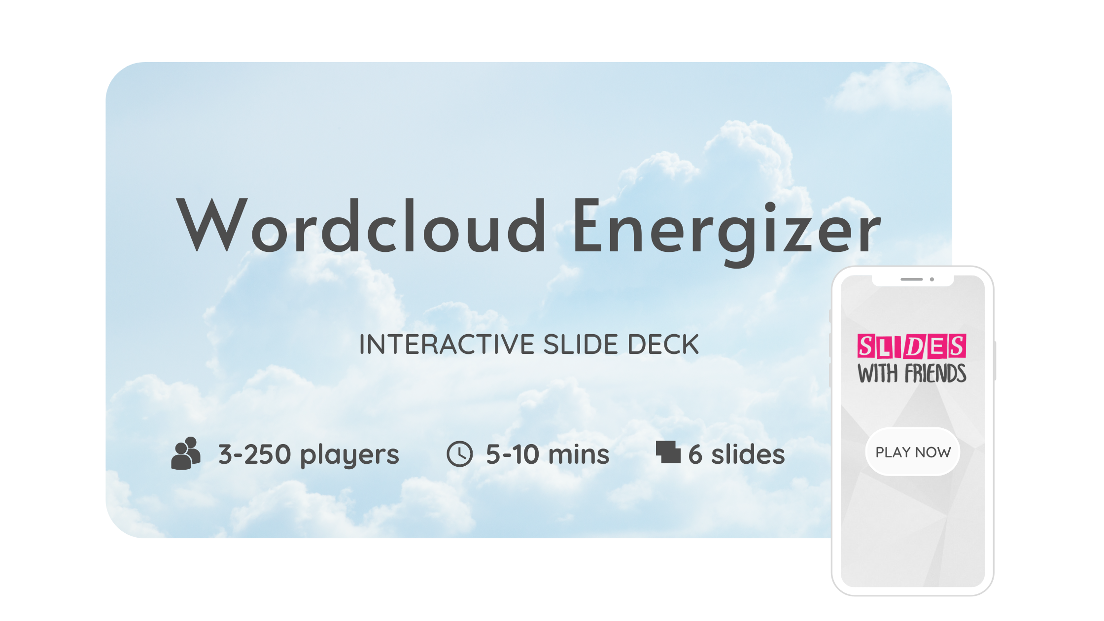 Asking questions breaks up how much a presenter is talking while simultaneously giving participants the opportunity to engage with each other. One of our favorite ways to do this is by using the Word Cloud deck, which gives attendees the chance to ask short questions and then vote on the ones they would like answered. It's a quick, visual way to find out what the group wants to know.