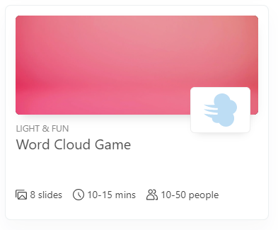 Word clouds are an excellent way to draw a group back in mid-meeting and gauge the mindset of your audience. Slides with Friends has a fantastic Word Cloud Game you can put together in a few moments to boost the participation in your next presentation.