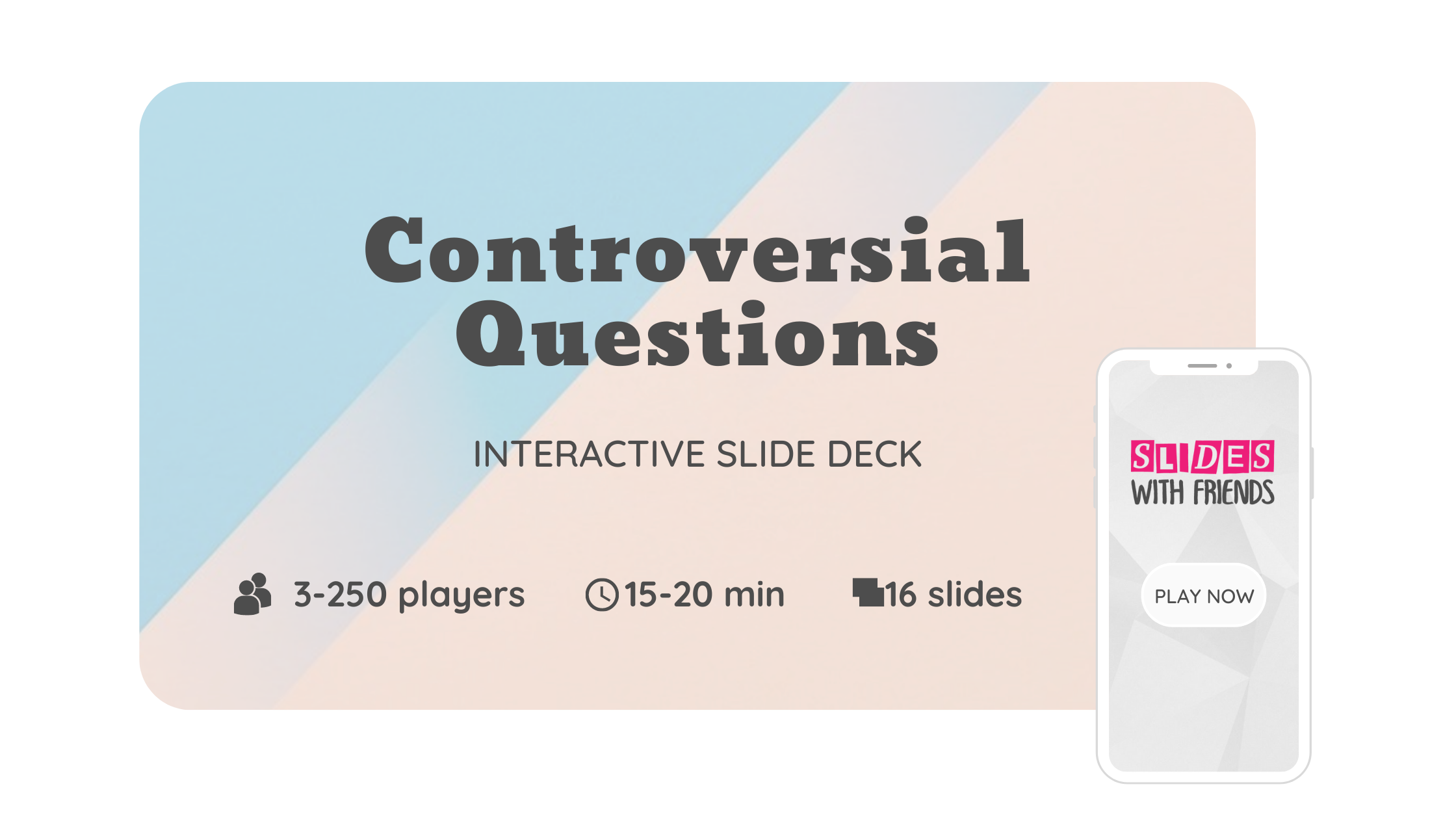 Our most popular ice breakers are “controversial questions,” a series of thought-provoking inquiries that are designed to ignite friendly disputes. Is a hot dog a sandwich? How many holes does a straw have? Were Ross and Rachel on a break? We’ll never know.