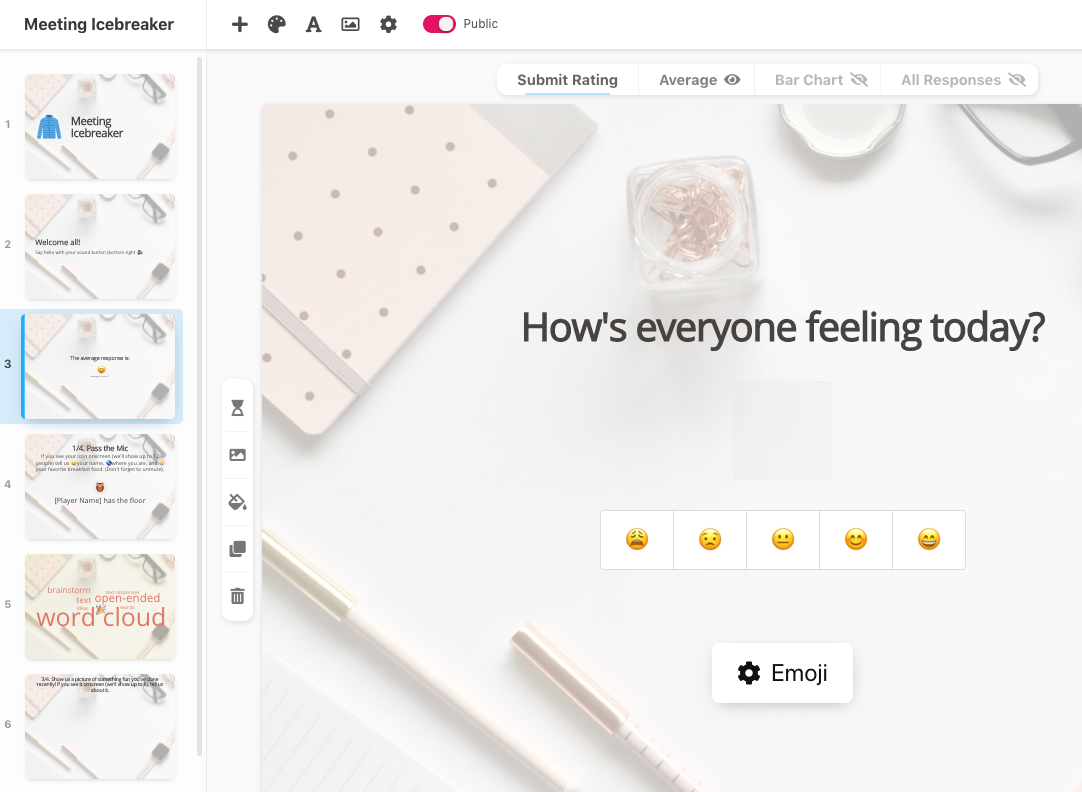 Elevate your team building without any extra work. Your remote team, hybrid workers, audience, or students will love having their voice heard.